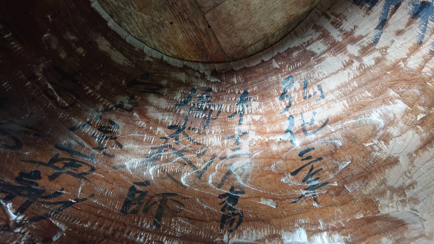 太鼓の胴の内側に中書きがありました。中書きによりますと180年近く昔のものです。
