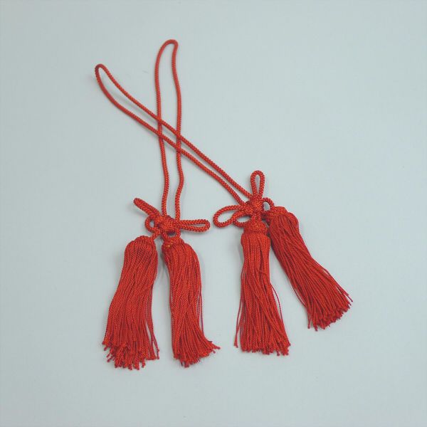 樫材は首からかけられる二本を結ぶ紅白紐がついていますが、カリン材の方はありません。