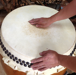 太鼓の革には何も塗ってはいけません。卵の白身やお酒を塗ると音が良くなるという話を聞くことがありますが、